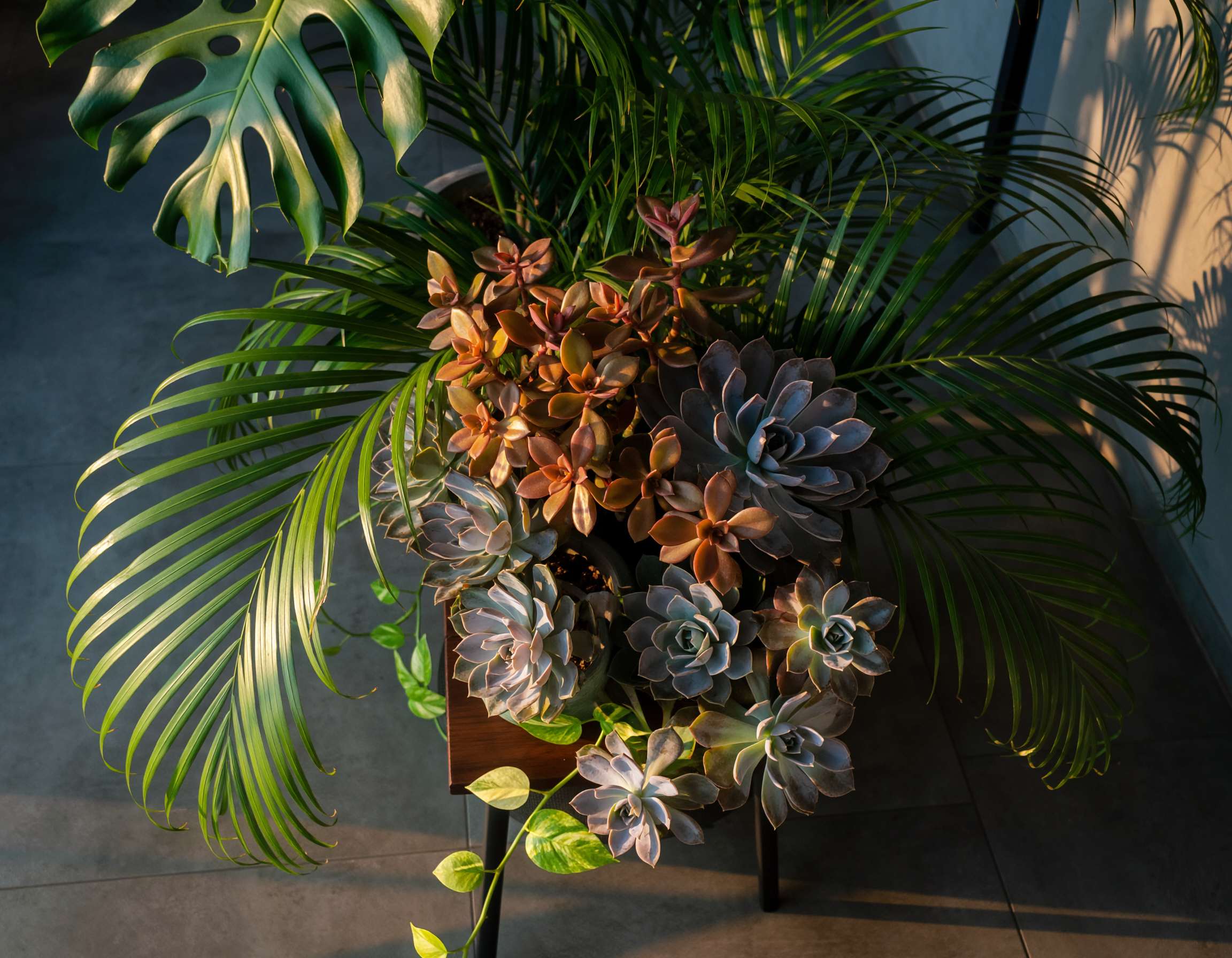 Saat memilih tanaman, Anda dapat mempertimbangkan elemen apa yang ingin diperkuat. Jika area rumah terasa terlalu dingin, tanaman dengan warna daun kemerahan atau tekstur lebih dramatis dapat menghadirkan elemen Api. Jika rumah terasa kurang stabil, tanaman berstruktur kokoh dan warna tanah yang dominan seperti tanaman sukulen besar bisa membantu menyeimbangkan elemen Tanah.