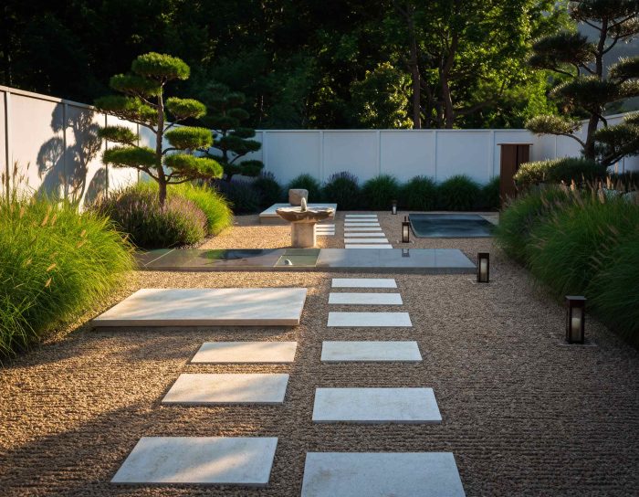 Permukaan keras seperti paving, batu koral, atau beton sebaiknya tidak mendominasi karena dapat menyerap panas dan memantulkannya ke tanaman. Sebaiknya kombinasikan dengan area hijau atau elemen air seperti kolam kecil atau air mancur untuk menyejukkan suhu sekitar.
