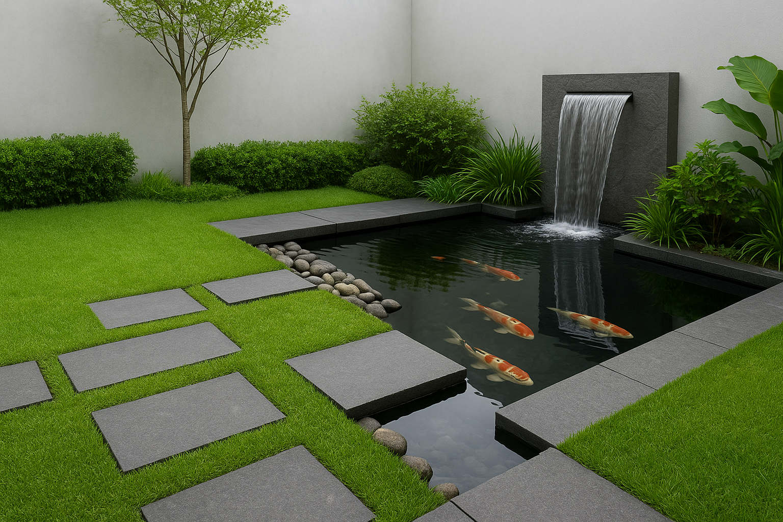 Kolam kecil dengan batu alam di sekelilingnya juga dapat menjadi tempat bagi ikan hias, seperti koi atau guppy, yang memberi sentuhan kehidupan tambahan. Dalam desain modern, water feature seperti dinding air (waterwall) banyak digunakan untuk taman depan rumah. Garden Center sering mengombinasikan waterwall batu alam dengan tanaman hijau di sekitarnya, menciptakan keseimbangan antara unsur keras dan lembut, kering dan basah.