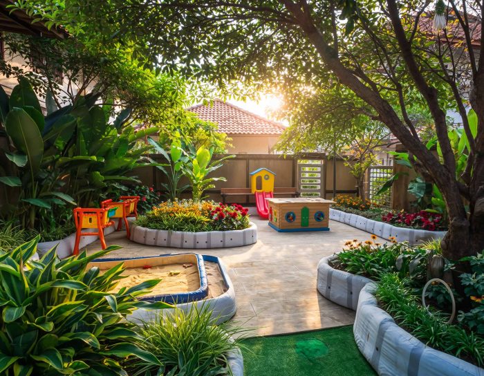 Misalnya, buat area kecil dengan bebatuan berwarna untuk melatih koordinasi mata dan tangan, atau zona tanam sederhana agar anak bisa mengenal siklus tumbuhan dari biji hingga berbuah. Anak-anak dapat diajak mengenal berbagai tekstur—lembutnya daun, kasar batu, lembeknya tanah—sebagai bagian dari pengalaman sensorik yang penting di masa pertumbuhan.