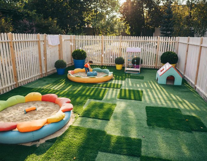 Material yang digunakan di taman juga harus memperhatikan aspek keamanan. Hindari penggunaan besi yang tajam atau kayu yang belum diampelas halus. Jika ada furnitur taman seperti bangku atau meja, pastikan tepiannya membulat dan stabil agar tidak mudah terguling ketika disentuh anak-anak.
