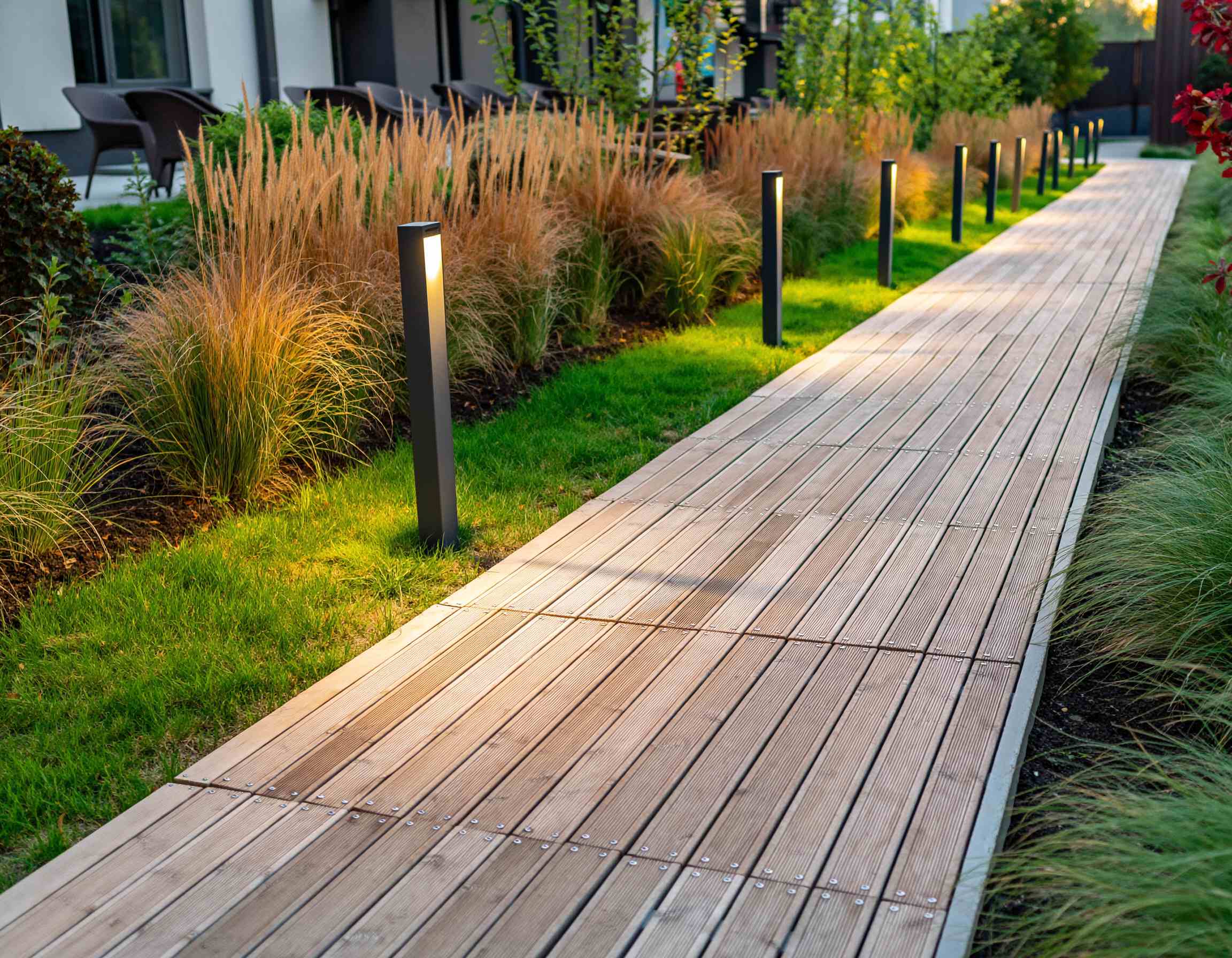 Namun, keindahan kayu menuntut perhatian ekstra dalam perawatan. Untuk menjaga warna dan mencegah pelapukan, permukaannya sebaiknya dilapisi dengan coating pelindung setiap beberapa tahun. Meskipun begitu, dengan perawatan yang tepat, jalan setapak dari kayu bisa menjadi elemen yang menonjol tanpa kehilangan karakter minimalisnya.