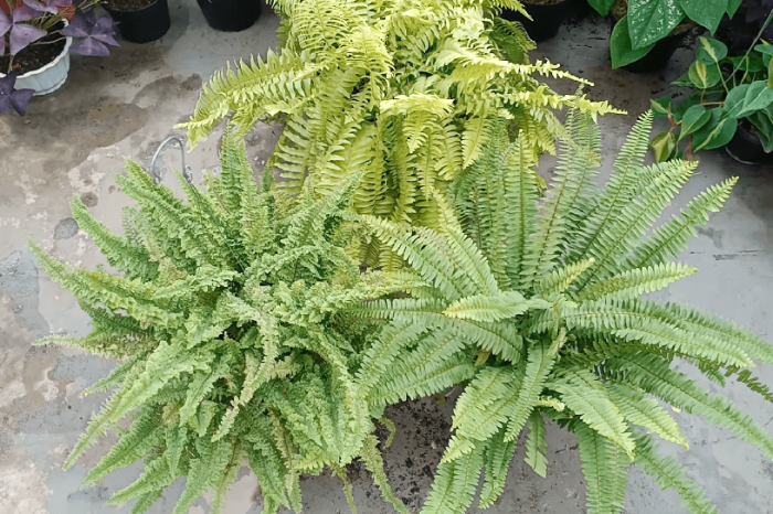 Warna hijau terang hingga medium pada frond memberikan kontras visual yang efektif terhadap dedaunan tanaman lain. Varietas ‘Bostoniensis’ yang paling umum dibudidayakan memiliki frond yang lebih panjang dan terkulai secara elegan dibandingkan dengan jenis liar. Reproduksi terjadi melalui pembentukan spora pada sori yang terletak di permukaan bawah pinnae, meskipun dalam budidaya komersial perbanyakan lebih sering dilakukan melalui divisi rimpang.