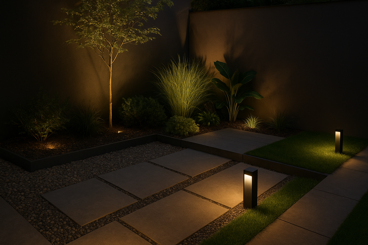 Dalam desain taman minimalis modern, cahaya digunakan seperti kuas pelukis yang menambahkan dimensi. Ada cahaya langsung, yang menerangi secara fokus; ada pula cahaya tidak langsung, yang menciptakan suasana lembut melalui pantulan. Kombinasi keduanya membentuk lanskap visual yang dinamis.