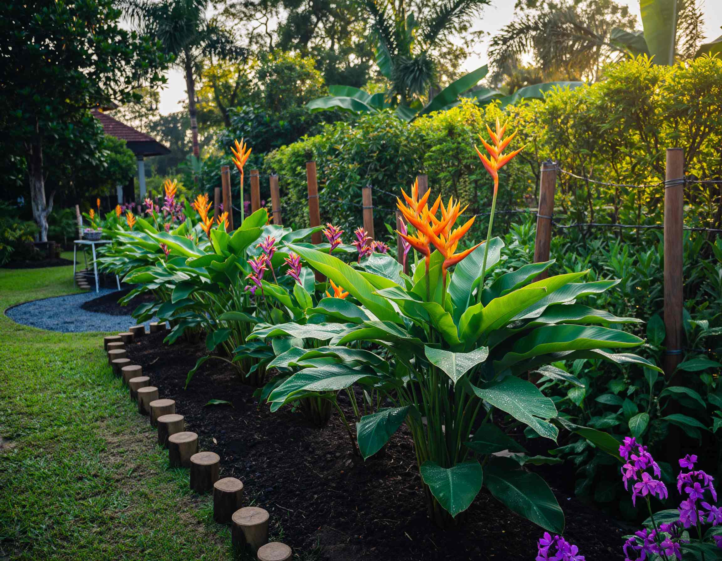Selain itu, tanaman pagar rendah seperti buxus atau teh-tehan dapat dipangkas rapi untuk membentuk batas alami antara area tanaman dan jalur pejalan kaki. Kombinasi ini membuat taman terlihat tertata tanpa mengurangi kesan alami.