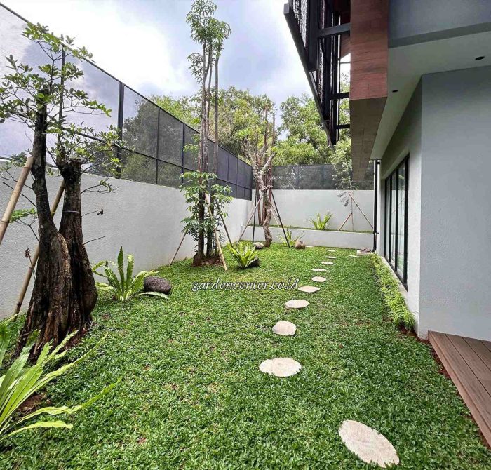 | Paket Minimalis | 10 – 20 m² | Rumput gajah mini, tanaman hias kecil, batu koral | Rp 5.000.000 – Rp 12.000.000 |